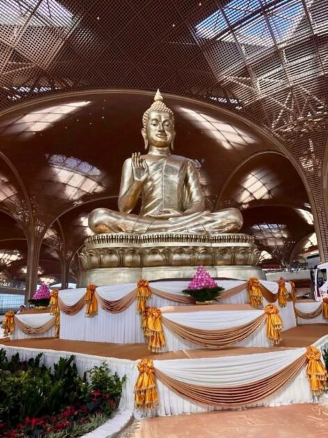 សូមជម្រាបជូនថា ពិធីបួងសួងរំកិលព្រះពុទ្ធបដិមាគង់លើសុវណ្ណាអាសនៈ ដំកល់នៅអាកាសយានដ្ឋានអន្តរជាតិតេជោ គឺក្នុងគោលបំណងដើម្បីសុំសេចក្តីសុខ សេចក្តីចម្រើន ដាក់តាំងបង្ហាញភ្ញៀវទេសចរជាតិ និង អន្តជាតិ គោរពបដិបត្តិពេលធ្វើដំណើរឆ្លងកាត់អាកាសយានដ្ឋានអន្តរជាតិតេជោ និងបង្ហាញថា ព្រះរាជាណាចក្រកម្ពុជា ព្រះពុទ្ធសាសនាជាសាសនារបស់រដ្ឋ ។ ដោយឡែក ព្រះពុទ្ធបដិមា ដែលសាងអំពីស្ពាន់ លោហៈធាតុរាល់រចនាបថ គឺសមស្របតាមប្រពៃណី រចនាបថរបស់ខ្មែរ ក្រោមការយកចិត្តទុកដាក់ស្រាវជ្រាវរបស់ថ្នាក់ដឹកនាំជំនាញរបស់ក្រសួងធម្មការនិងសាសនា ដែលដឹកនាំដោយឯកឧត្តម រដ្ឋមន្រ្តី ចាយ បូរិន ដែលចង់បង្ហាញដល់ភ្ញៀវទេសចរជាតិ និង អន្តរជាតិ ស្គាល់កាន់តែច្បាស់ពីប្រទេសកម្ពុជា ហើយបន្តជួយផ្សព្វផ្សាយទៅពិភពលោកកាន់តែទូលំទូលាយ៕