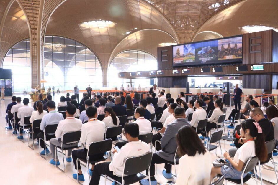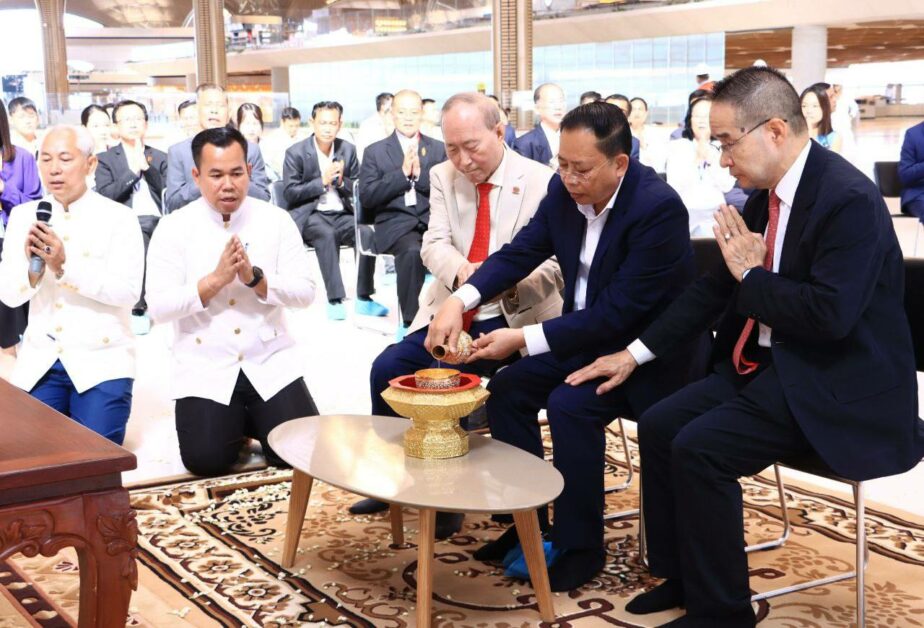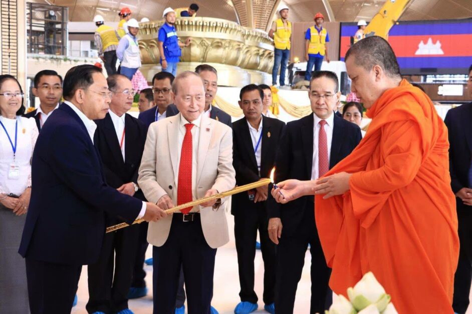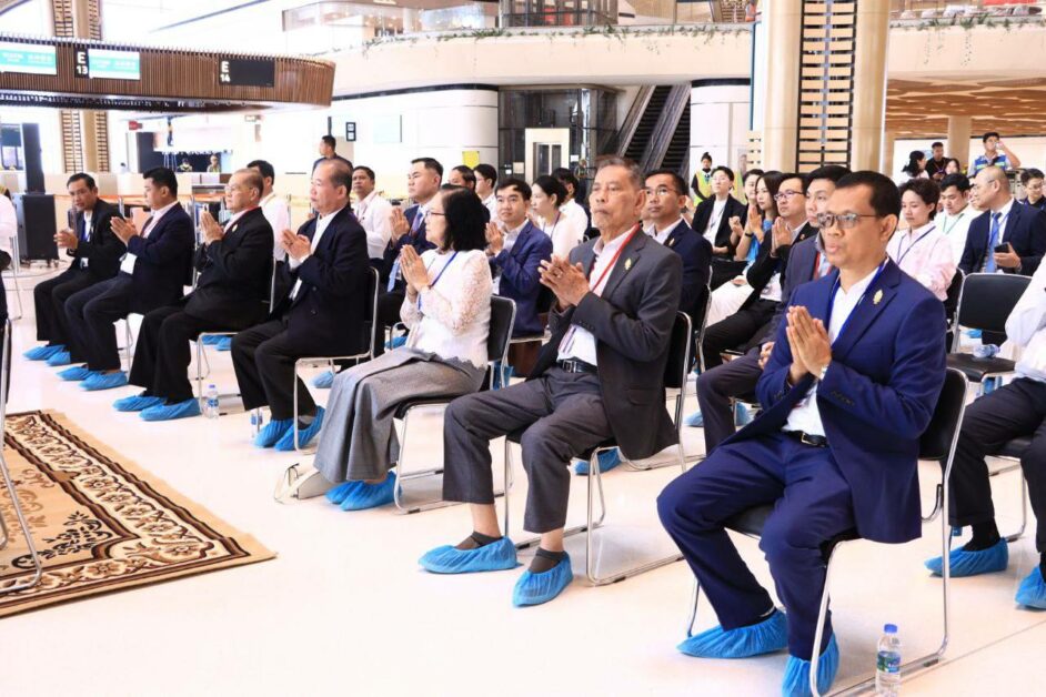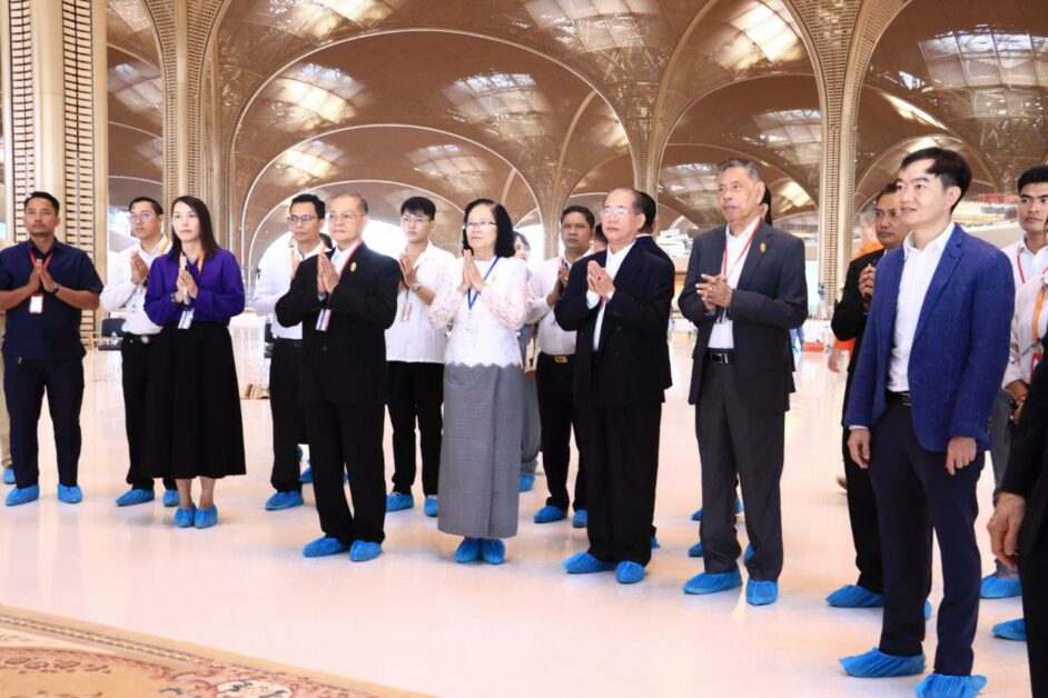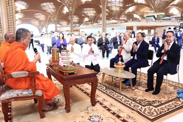 សម្តេចព្រះមហាសុមេធាធិបតី កិត្តិបណ្ឌិត អំ លីមហេង សម្តេចព្រះសង្ឃនាយក គណៈមហានិកាយ នៃព្រះរាជាណាចក្រកម្ពុជា និងឯកឧត្តម ចាយ បូរិន រដ្ឋមន្រ្តីក្រសួងធម្មការនិងសាសនា យាងនិងអញ្ជើញក្នុងពិធីបួងសួងរំកិលព្រះពុទ្ធបដិមាគង់លើសុវណ្ណអាសនៈ ដំកល់នៅអាកាសយានដ្ឋានអន្តរជាតិតេជោ ដែលស្ថិតនៅក្រុងតាខ្មៅ ខេត្តកណ្តាល នាព្រឹកថ្ងៃទី០៨ ខែសីហា ឆ្នាំ២០២៥ ។