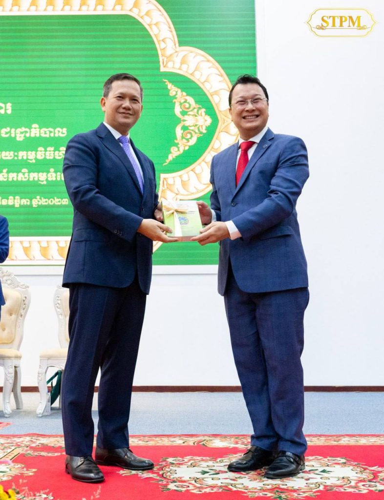 ក្នុងឱកាសដ៏វិសេសវិសាលនោះផងដែរ សម្តេចធិបតី ហ៊ុន ម៉ាណែត ក៏បានធ្វើការអបអរសាទរអង្ករពូជស្រូវសែនក្រអូបកម្ពុជា ដែលបានឈ្នះ «ពានរង្វាន់មាស» ក្នុងកម្មវិធីវាយតម្លៃគុណភាពរសជាតិប្រភេទ អង្ករសគ្រាប់វែងចិន-អាស៊ានលើកទី ១ ដែលរៀបចំដោយវិទ្យាស្ថានវិទ្យាសាស្រ្តស្រូវនៃបណ្ឌិត្យសភាវិទ្យាសាស្រ្តកសិកម្ម ខេត្តគ័ងស៊ី ប្រទេសចិន កាលពីថ្ងៃទី២៨ ខែតុលា ឆ្នាំ២០២៣ កន្លងទៅ ។ ការណ៍នេះ គឺជាកិត្តិយស និងមោទនភាពថ្មីមួយទៀត សម្រាប់ប្រជាកសិករ និងវិស័យកសិកម្មកម្ពុជា ក្រោយពីអង្ករពូជស្រូវផ្ការំដួលកម្ពុជាបានឈ្នះ «ពានរង្វាន់អង្ករល្អដាច់គេ» ចំនួន ៥ លើក ក្នុងរយៈពេល ១០ ឆ្នាំនៃការចូលរួមប្រកួតប្រជែងអង្កររបស់កម្ពុជានៅលើឆាកអន្តរជាតិ ។