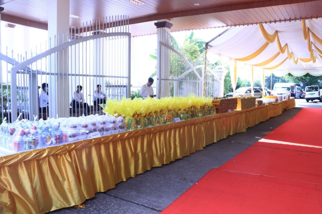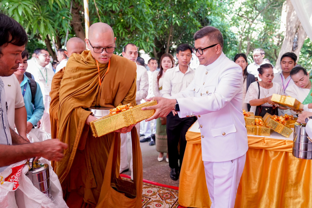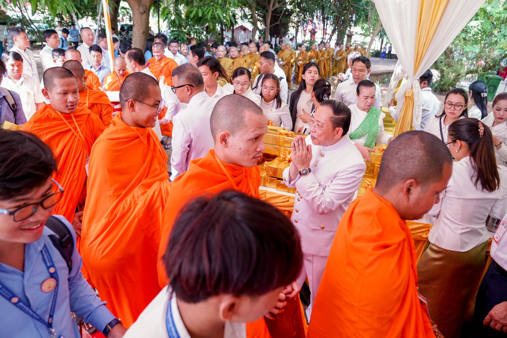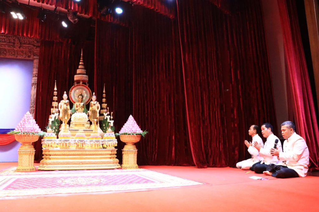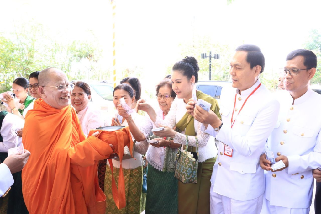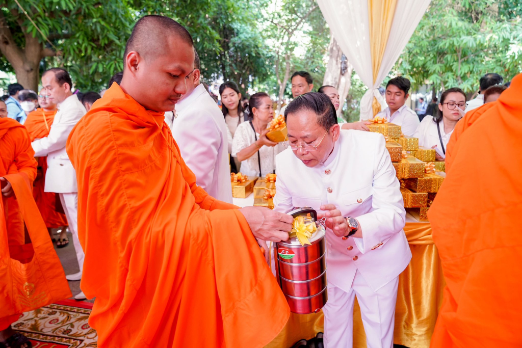 ក្នុងឱកាសនោះដែរ ដើម្បីរំលឹកនូវព្រះរាជគុណូបការៈដ៏ឧត្តុង្គឧត្តមបំផុតរបស់ ព្រះករុណា ព្រះបាទសម្តេចព្រះបរមនាថ នរោត្តម សីហមុនី ព្រះមហាក្សត្រនៃព្រះរាជាណាចក្រកម្ពុជា ជាទីគោរពសក្ការៈដ៏ខ្ពង់ខ្ពស់បំផុត ដែលទ្រង់ទទួលបាននូវព្រះរាជបរមងារកិត្តិយសដ៏ខ្ពង់ខ្ពស់បំផុតជាព្រះស្រីលោកធម្មិករាជ ក្រសួងធម្មការនិងសាសនា បានរៀបចំពិធីសូត្រមន្តចម្រើនព្រះបរិត្ត និងរាប់បាត្រ ថ្វាយ ប្រគេន សម្តេចសង្ឃ ព្រះមន្រ្តីសង្ឃចំនួន៧៤ព្រះអង្គ ដើម្បីថ្វាយព្រះរាជកុសលដល់ ព្រះករុណាថ្លៃវិសេស ជាទីគោរពសក្ការៈដ៏ខ្ពង់ខ្ពស់បំផុត សូមព្រះអង្គទ្រង់ប្រកបដោយព្រះបរមសុខគ្រប់ប្រការ ដើម្បីគង់ប្រថាប់ជាម្លប់ដ៏ត្រជាក់សម្រាប់ប្រជានុរាស្រ្តរបស់ព្រះអង្គ អស់កាលជានិច្ចនិរន្តរ៍។