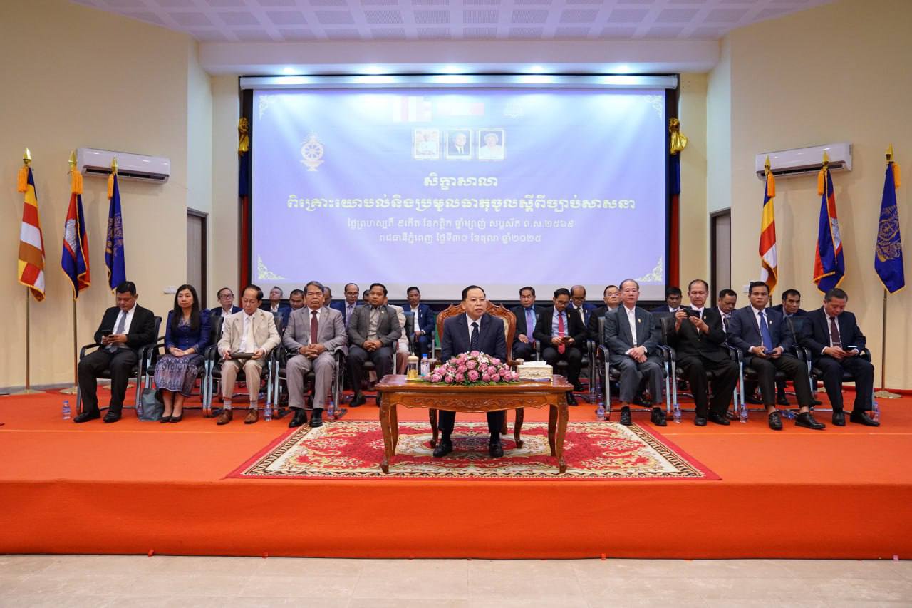 ឯកឧត្តម រដ្ឋមន្រ្តី បានមានប្រសាសន៍ថា ដើម្បីធានាឱ្យបាននូវសុខុដុមណីយកម្មសាសនានៅកម្ពុជា ស្របទៅនឹងយុទ្ធសាស្រ្តបញ្ចកោណដំណាក់កាលទី១ របស់រាជរដ្ឋាភិបាលនីតិកាលទី៧នៃរដ្ឋសភា ក្រោមការដឹកនាំប្រកបដោយភាព ប៉ិនប្រសប់ ពោរពេញដោយថាមពល ទន់ភ្លន់ម៉ឺងម៉ាត់ និងភាពប្រាកដនិយមរបស់ សម្ដេចមហាបវរធិបតី ហ៊ុន ម៉ាណែត នាយករដ្ឋមន្ត្រី នៃព្រះរាជាណាចក្រកម្ពុជា ដែលបានផ្តល់អនុសាសន៍ណែនាំជាបន្តបន្ទាប់ដល់ក្រសួងធម្មការនិងសាសនា រៀបចំសេចក្តីព្រាងច្បាប់ស្តីពីជំនឿនិងសាសនា ដើម្បីដឹកនាំ គ្រប់គ្រង និងអភិវឌ្ឍជំនឿនិង សាសនានៅព្រះរាជាណាចក្រកម្ពុជា ឱ្យបានកាន់តែល្អប្រសើរនិងគ្រប់ជ្រុងជ្រោយ ជាឧត្តមប្រយោជន៍សម្រាប់សាសនា និងប្រទេសជាតិ តាមរយៈការកាត់បន្ថយភាពអសកម្ម និងភាពអវិជ្ជមានឱ្យបានជាអតិបរមា ដោយការបង្កើនការការពារ និងការថែរក្សាគុណតម្លៃស្នូលក្នុងវិស័យសាសនាឱ្យមានភាពគង់វង្ស និងមានសុខដុមនីយកម្មសាសនាទូទាំងប្រទេស ។