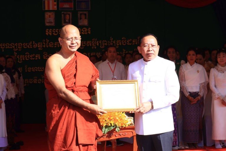 (ខេត្តកណ្តាល) នៅថ្ងៃទី១០ ខែកុម្ភៈ ឆ្នាំ២០២៦ ឯកឧត្តមបណ្ឌិត ចាយ បូរិនរដ្ឋមន្ត្រីក្រសួងធម្មការ និងសាសនា តំណាងដ៏ខ្ពង់ខ្ពស់ សម្តេចមហាវរធិបតី ហ៊ុន ម៉ាណែត នាយករដ្ឋមន្ត្រីនៃព្រះរាជាណាចក្រកម្ពុជា អញ្ជើញជាអធិបតីក្នុងពិធីបុណ្យខួប៥៦ឆ្នាំ នៃការបកប្រែគម្ពីរព្រះត្រៃបិដកខ្មែរ សូធ្យព្រះត្រៃបិដក និងរំលឹកគុណក្រុមជំនុំព្រះត្រៃបិដក នៅពុទ្ធមណ្ឌលវិបស្សនាធុរៈនៃព្រះរាជាណាចក្រកម្ពុជា(ភ្នំអដ្ឋរស្ស) ស្ថិតនៅភូមិភ្នំ ឃុំផ្សារដែក ស្រុកពញាឮ ខេត្តកណ្តាល។