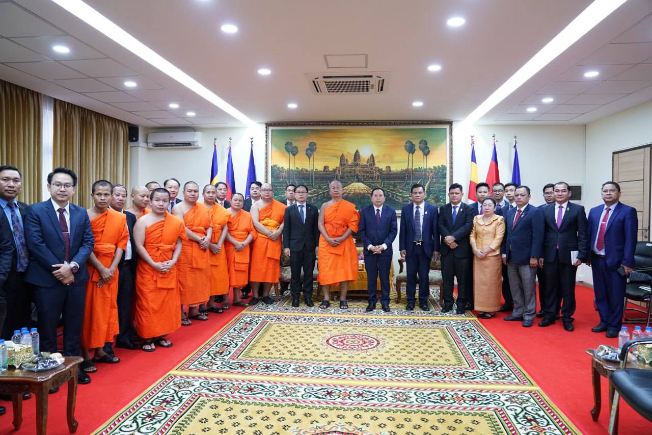 ជាកិច្ចស្វាគមន៍ ឯកឧត្តម រដ្ឋមន្រ្តី សម្ដែងនូវការពេញចិត្តយ៉ាងខ្លាំង ចំពោះវឌ្ឍនភាពនៃទំនាក់ទំនងជាប្រពៃណី ជាអ្នកជិតខាងល្អ និងកិច្ចសហប្រតិបត្តិការក្នុងភាពជាដៃគូយុទ្ធសាស្ត្រគ្រប់ជ្រុងជ្រោយ និងយូរអង្វែង រវាងប្រទេសទាំងពីរ កម្ពុជា-ឡាវ ដែលរាជរដ្ឋាភិបាលកម្ពុជា ក្រោមការដឹកនាំរបស់ សម្តេចមហាសេនាបតីតេជោ ហ៊ុន សែន ប្រធានព្រឹទ្ធសភា និង សម្តេចមហាបវរធិបតី ហ៊ុន ម៉ាណែត នាយករដ្ឋមន្រ្តីនៃព្រះរាជាណាចក្រកម្ពុជា បានយកចិត្តទុកដាក់លើកកម្ពស់ចំណងមិត្តភាព លើគ្រប់បណ្តាប្រទេសជាមិត្ត ដែលបង្ហាញពីមិត្តភាព ដ៏ជិតស្និទ្ធ និងទំនាក់ទំនងដ៏រឹងមាំ ជាប្រពៃណីរវាង ប្រទេស និង ប្រជាជន ពិសេសភាពសុខដុមនីយកម្មនៅវិស័យព្រះពុទ្ធសាសនាផងដែល ។