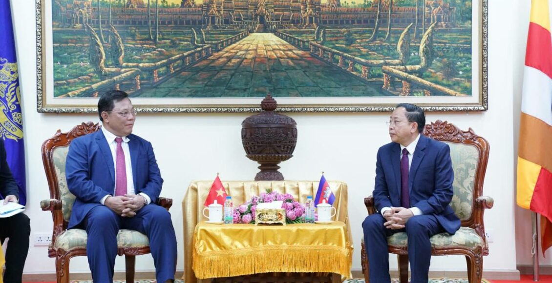 ឯកឧត្តម ចាយ បូរិន រដ្ឋមន្រ្តីក្រសួងធម្មការនិងសាសនា អញ្ជើញទទួលជួបស្វាគមន៍ជាមួយ ឯកឧត្តមបណ្ឌិត ងៀន ហាយជុង (H.E. Dr. Nguyen Hai Trung) អនុរដ្ឋមន្ត្រីក្រសួងកិច្ចការ ជនជាតិ និងសាសនា នៃសាធារណរដ្ឋសង្គមនិយមវៀតណាម និងព្រះតេជគុណ ធិច ហ្វិថុង (Most Venerable Thich Hue Thong) ព្រះអនុប្រធានក្រុមប្រឹក្សាប្រតិបត្តិ និងជាព្រះប្រធានគណៈកម្មាធិការមជ្ឈិមកិច្ចការនីតិកម្ម នៃព្រះពុទ្ធសាសនាវៀតណាម ព្រមទាំង គណៈប្រតិភូព្រះមន្រ្តីសង្ឃវៀតណាម ក្នុងឱកាសអញ្ជើញចូលរួម កិច្ចប្រជុំកំពូលព្រះពុទ្ធសាសនា កម្ពុជា ឡាវ វៀតណាម លើកទី៣ ក្រោមប្រធានបទ “សុខដុមនីយកម្មព្រះពុទ្ធសាសនាដើម្បីសន្តិភាពនិងការអភិវឌ្ឍប្រកបដោយចីរភាព” ដែលកម្ពុជាធ្វើជាម្ចាស់ផ្ទះប្រារព្ធធ្វើឡើងនៅរាជធានីភ្នំពេញ នៃព្រះរាជាណាចក្រកម្ពុជាចាប់ពីថ្ងៃទី២៧ ដល់ថ្ងៃទី២៩ ខែតុលា ឆ្នាំ២០២៥ នារសៀលថ្ងៃទី២៧ ខែតុលា ឆ្នាំ២០២៥ នាទីស្តីការក្រសួងធម្មការនិងសាសនា។