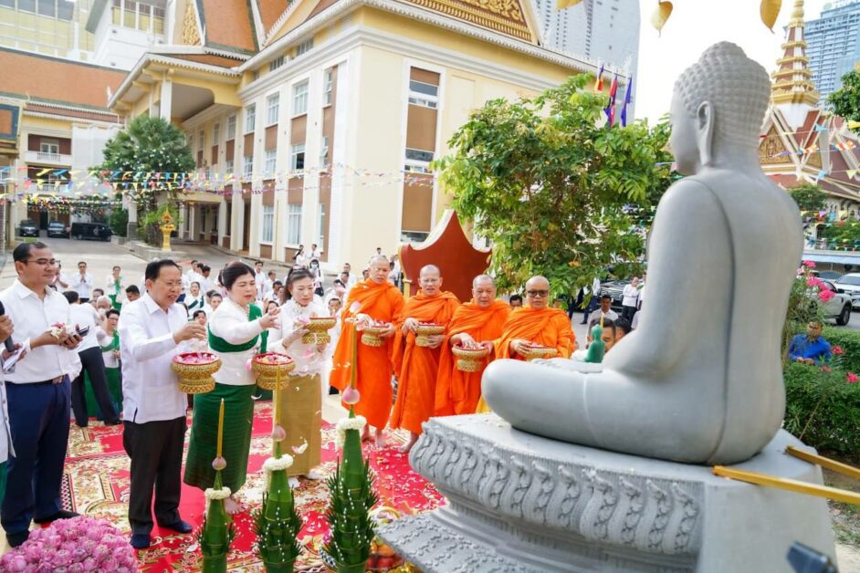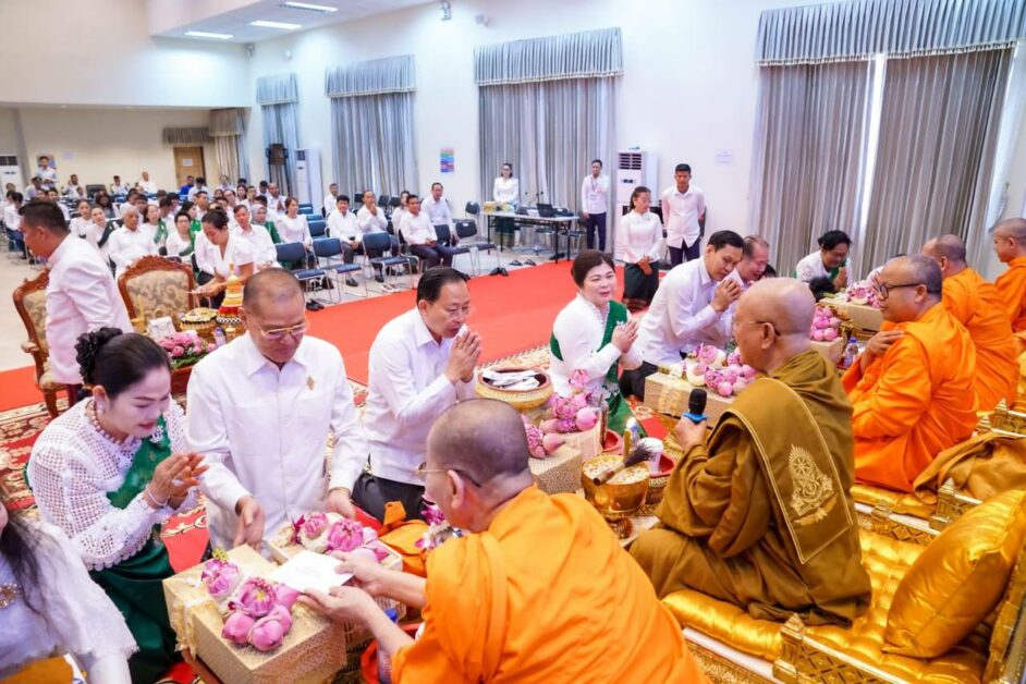 ឯកឧត្តម ចាយ បូរិន រដ្ឋមន្រ្តីក្រសួងធម្មការនិងសាសនា និងលោកជំទាវ សូ ភត្ត្រា ចាយ បូរិន ដឹកនាំឯកឧត្តមលោកជំទាវជាថ្នាក់ដឹកនាំ មន្ត្រីរាជការក្រោមឱវាទ បានយាងនិង និមន្ត សម្ដេចព្រះអភិសិរីសុគន្ធា មហាសង្ឃរាជាធិបតី កិត្តិឧទ្ទេសបណ្ឌិត បួរ គ្រី សម្តេចព្រះមហាសង្ឃរាជ គណៈធម្មយុត្តិកនិកាយ នៃព្រះរាជាណាចក្រកម្ពុជា ,សម្ដេចព្រះធម្មលិខិត បណ្ឌិត សៅរ៍ ចន្ទថុល្ល ព្រះរាជតំណាងដ៏ខ្ពង់ខ្ពស់ សម្តេចព្រះមហាសុមេធាធិបតី កិត្តិបណ្ឌិត អំ លីមហេង សម្តេចព្រះសង្ឃនាយក គណៈមហានិកាយ នៃព្រះរាជាណាចក្រកម្ពុជា, សម្តេចសង្ឃ ព្រះមន្រ្តីសង្ឃតាមឋានានុក្រម