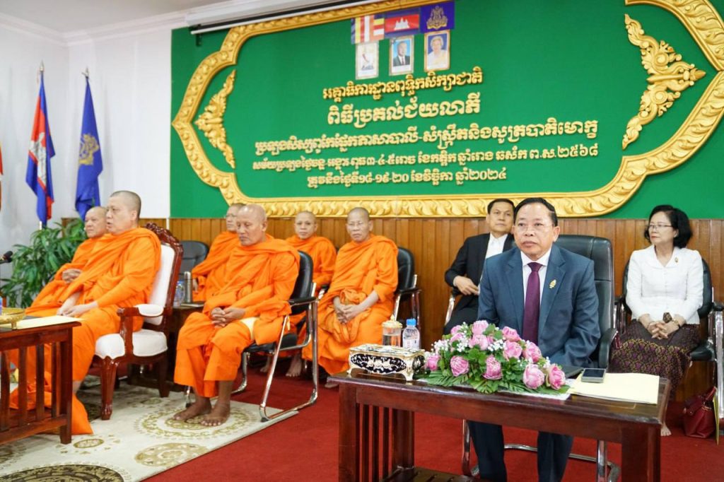ឯកឧត្តមបណ្ឌិតចាយ បូរិនរដ្ឋមន្ត្រីក្រសួងធម្មការនិងសាសនាអញ្ជើញជាអធិបតីពិធីប្រគល់ជ័យលាភីដល់សមណសិស្ស សិស្សពូកែទូទាំងប្រទេស ផ្នែកសូត្របាតិមោក្ខនិងផ្នែកភាសាបាលី-សំស្ក្រឹត ថ្នាក់ឆ្នាំទី៣ នៃពុទ្ធិកមធ្យមសិក្សាបឋមភូមិនិងទុតិយភូមិ សម្រាប់ឆ្នាំសិក្សា២០២៤-២០២៥ នៅអគ្គាធិការដ្ឋានពុទ្ធិកសិក្សាជាតិ នារសៀលថ្ងៃទី១៩ខែវិច្ឆិកា ឆ្នាំ២០២៤ ពិធីនេះមានការនិមន្តចូលរួមដោយ សម្ដេចព្រះពោធិវ័ង្ស កិត្តិបណ្ឌិត អំ លីមហេង ព្រះអគ្គាធិការនៃអគ្គាធិការដ្ឋានពុទ្ធិកសិក្សាជាតិ ថ្នាក់ដឹកនាំក្រសួងធម្មការនិងសាសនា សម្តេចព្រះអគ្គាធិការរង ព្រះអគ្គាធិការរង ព្រះមន្ត្រីសង្ឃ និងជ័យលាភីសមណសិស្ស-សិស្សផ្នែកភាសាបាលី-សំស្ក្រឹត ចំនួន ១៧៩ រូប ជ័យលាភីការសូត្របាតិមោក្ខ ចំនួន ២៨ រូប ដែលបានចូលរួមប្រឡងនៅមណ្ឌលប្រឡងពុទ្ធិកវិទ្យាល័យព្រះសុរាម្រឹត រាជធានីភ្នំពេញ ។